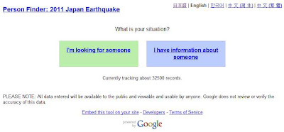 It has launched a very useful service to search people missing in Japan, It's provided with both the languages "English" and "Japanese"